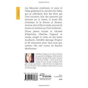Les blessures cicatrisent, le cœur et l’âme guérissent et, derrière les failles qui se referment, loin des êtres qui l’ont meurtrie, loin des épreuves qui auraient pu la briser, la jeune fille s’estompe et la femme se dessine, mature, sûre d’elle et aimée, nourrie de toutes ces ombres qui l’ont renforcée. D’une plume sincère et vibrante d’émotions, Charline Caquard se confie, simple et vraie, en des textes touchants, véritable message d’espoir et de renouveau pour tous ceux qui, comme elle, ont connu de lourdes désillusions.